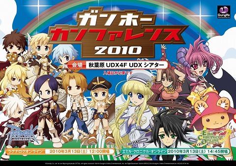 【概要】 ECOの今後の展開を、ユーザーのみなさまに直接お伝えする「ガンホーカンカンファレンス2010」が、明日2010年3月13日(土)東京?秋葉原で開催いたします。 近日実装予定である「新しい仲間」を迎えるための充実したアップデートから、SAGA11、SAGA12等、2010年の展開を大発表!! 入場無料?事前登録なしでご観覧いただけるプレスカンファレンスとなっておりますので、お友達やリングメンバーの方とお誘い合わせのうえ、お越しください。 この機会に、いち早くECOの最新情報をゲットしよう!! 【期間】 <第1部 RO> 2010年3月13日(土)12:00 ? 2010年3月13日(土)14:00 <第2部 ECO> 2010年3月13日(土)14:45 ? 2010年3月13日(土)16:00 引用元:ウルティマオンライン(Ultima Online) 情報局